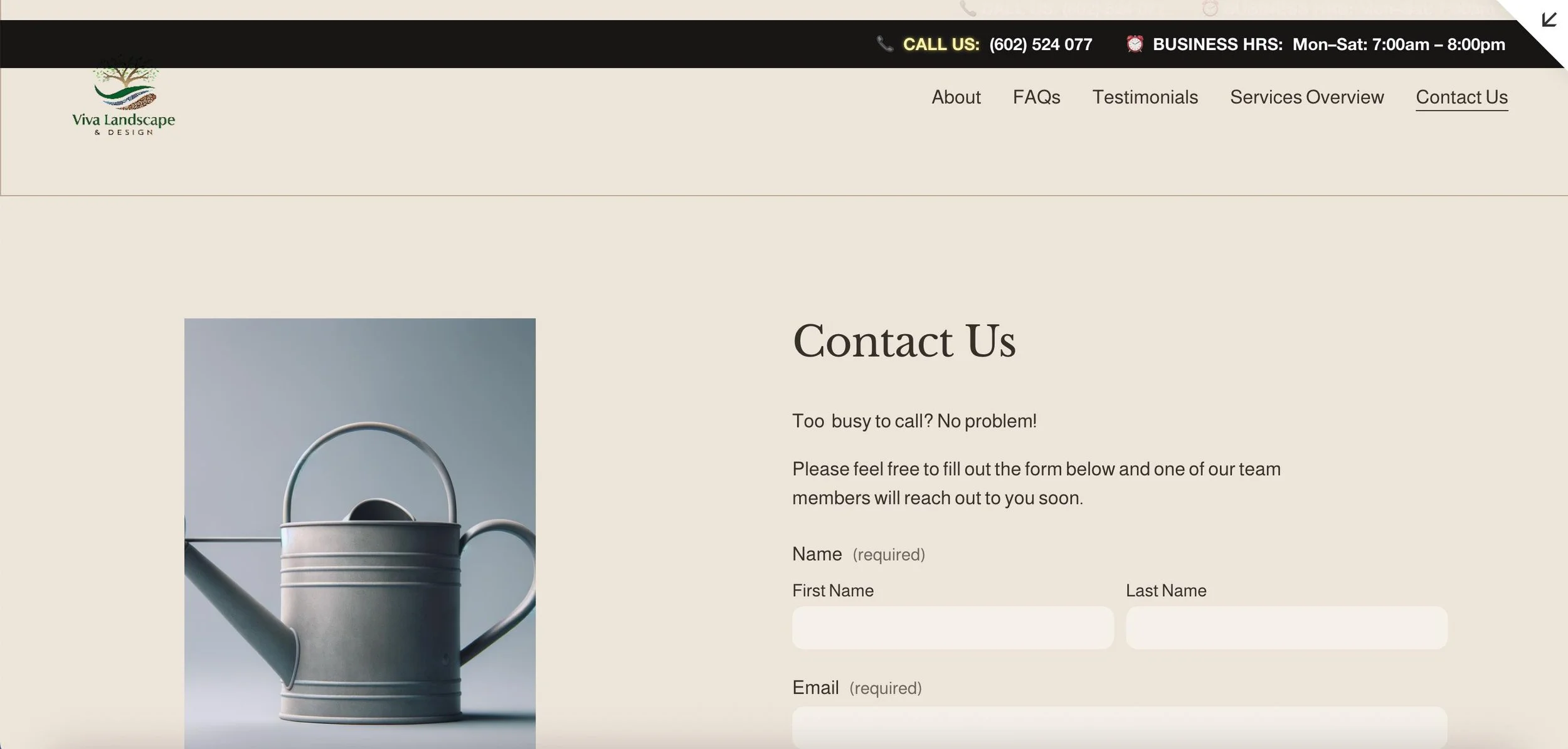 Sample Website created for a landscaping client